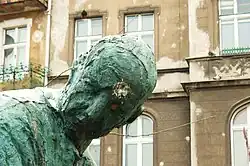 Nie-pomnik rozdzielony ogrodzeniem (w tle Stary Browar i Andersia Tower) | |