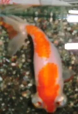 Kształt ciała tej odmiany występuje w dwóch wersjach: krótkim i wydłużonym. Oczy dość duże, skośno skierowane ku górze. Brak jest płetwy grzbietowej, płetwa ogona wydłużona i rozdwojona. Pozostałe płetwy krótkie. Kolorystyka tych ryb jest stosunkowo uboga, najczęściej pomarańczowa. Zdarzają się barwy czerwone lub wielokolorowe.