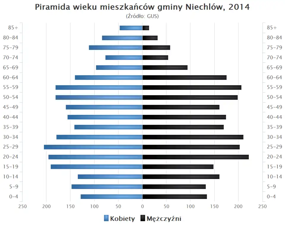 - Piramida wieku mieszkańców gminy Niechlów w 2014 roku[5].