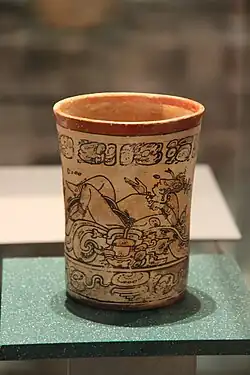 - ↑ Ramón Carrasco-Vargas, Verónica A. Vázquez-López, Simon Martin, Daily life of the ancient Maya recorded on murals at Calakmul, Mexico, „Proceedings of the National Academy of Sciences of the United States of America”, 106 (46), 2009, s. 19245–19249, DOI: 10.1073/pnas.0904374106, ISSN 0027-8424, PMID: 19901331, PMCID: PMC2780771 [dostęp 2024-10-22] (ang.).