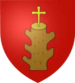 W polu czerwonym ostrzew srebrna lub naturalna[1] z zaćwieczonym krzyżem złotym lub srebrnym. Sęków pięć lub sześć, zazwyczaj trzy po stronie prawej. W klejnocie między czarnymi skrzydłami orlimi samo godło.