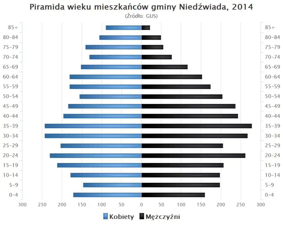 - Piramida wieku mieszkańców gminy Niedźwiada w 2014 roku[57].