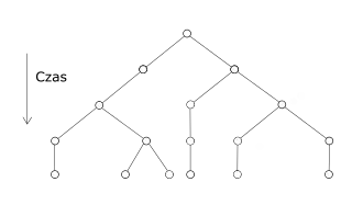 Ewolucje niedeterministycznej maszyny Turinga można reprezentować w postaci drzewa w którym każdy poziom odpowiada jednemu krokowi maszyny, natomiast rozgałęzienia wynikają z niedeterminizmu funkcji przejścia. Taka maszyna kończy prace w momencie, gdy dochodzi do poziomu ze stanem końcowym w co najmniej jednym z węzłów. W tym modelu kolejny krok maszyny liczony jest jako przejście do następnego zbioru możliwych stanów (poziomu drzewa).