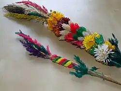 - palma z południa Polski – kilkunastometrowe pręty wierzbowe, wiklinowe albo leszczynowe przewiązane rytmicznie szpagatem lub rzemieniem; na górze czub ze sztucznych kolorowych kwiatów, bazi, bukszpanu, cisu; doczepione kolorowe wstążki[9].