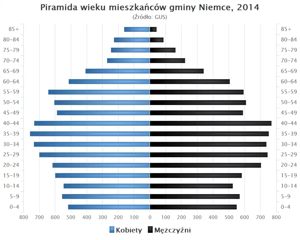 - Piramida wieku mieszkańców gminy Niemce w 2014 roku[1].