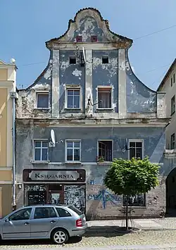 - dom, Rynek 16, z XVIII w., przebudowany w XIX/XX w. (dec. pl. Wolności)