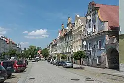 - ośrodek historyczny miasta z rynkiem o wydłużonym, wrzecionowatym kształcie