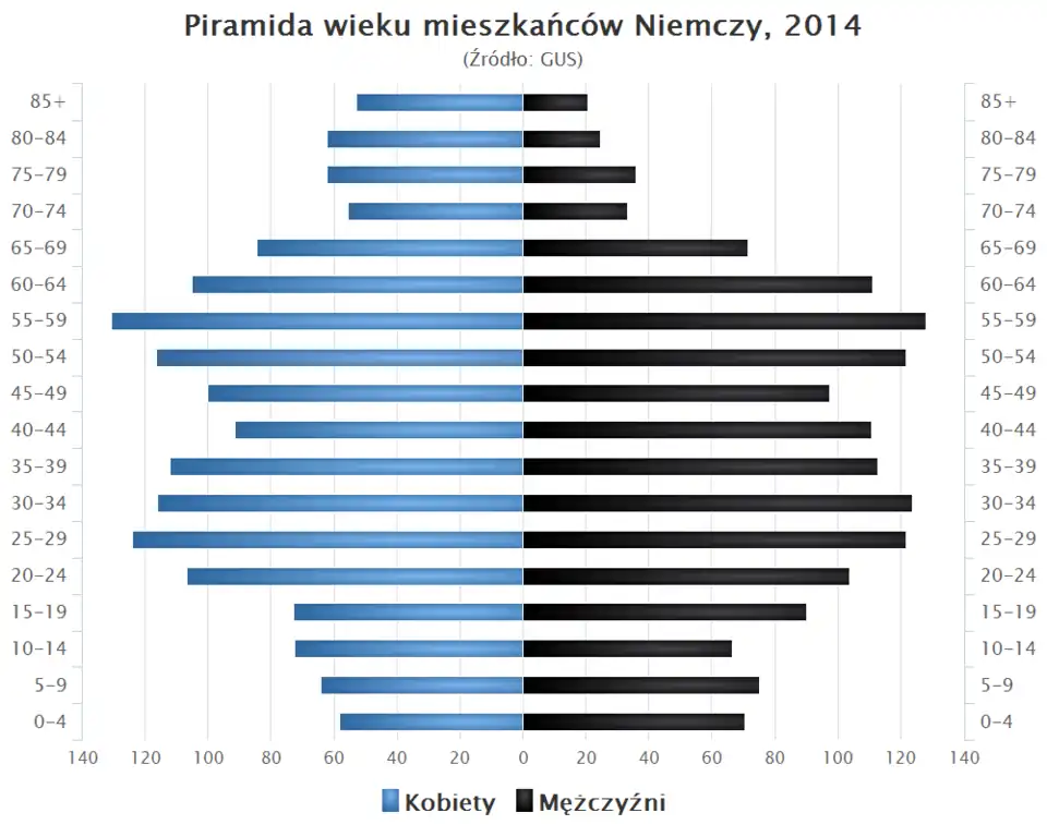 Piramida wieku mieszkańców Niemczy w 2014 roku[21].
