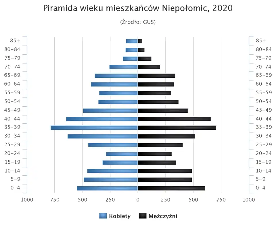 - Piramida wieku mieszkańców Niepołomic w 2020 roku[6].