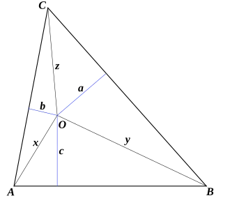 gdzie są odległościami punktu od wierzchołków trójkąta, natomiast są odległościami punktu od prostych zawierających boki trójkąta.