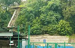 Do początku lat 40. XX wieku, za obecnymi basenami pływackimi, znajdował się duży zakład przemysłowy - Cegielnia Mechaniczna Poznań-Golęcin, wraz z niewielką osadą domków pracowniczych. Na początku okupacji niemieckiej, z uwagi na wyczerpanie zasobów gliny, cały zakład został rozebrany przez władze niemieckie. Obecnie nie pozostał po nim żaden ślad w terenie[3].