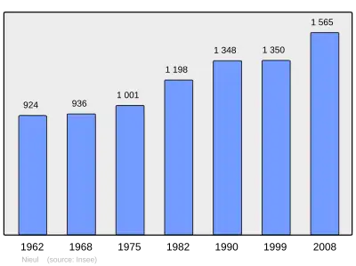 Według danych na rok 1990 gminę zamieszkiwało 1348 osób, a gęstość zaludnienia wynosiła 79 osób/km² (wśród 747 gmin Limousin Nieul plasuje się na 83. miejscu pod względem liczby ludności, natomiast pod względem powierzchni na miejscu 400.).