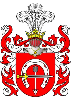 - ↑ Józef Szymański: Herbarz rycerstwa polskiego. Warszawa: DiG, 2001, s. 254. ISBN 83-7181-217-5.ale jako klejnot podaje pióra pawie