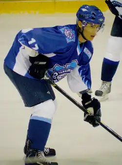 ![]() Nikita Bucenko w barwach Ukrainy w meczu z Rosją B podczas turnieju EIHC (Arena Sanok, 11 listopada 2010) | |