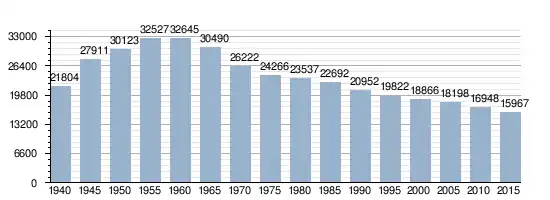 Zmiany w populacji terenu miasta w latach 1940–2015: