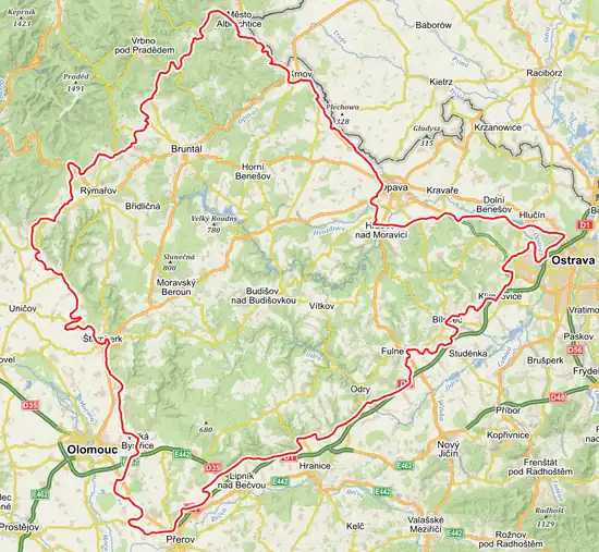 ![]() Zasięg regionu Niskiego Jesionika w obrębie państwa czeskiego | |