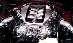 Stworzony specjalnie dla tego modelu silnik VR38DETT o pojemności 3.8 l w układzie V, sześciocylindrowy, który doładowany jest parą turbosprężarek IHI. Produkuje moc 570 (początkowo 485, po liftingu zwiększona do 530, następnie do 550) KM przy 6800 obr./min, a maksymalny moment obrotowy wynoszący 632 Nm dostępny jest w zakresie od 3300 do 5800 obr./min.