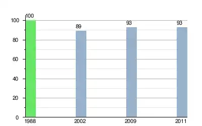 Liczba mieszkańców w latach (dane ze spisu powszechnego w 1988 według stanu jednostek terytorialnych z 1 stycznia 1998)