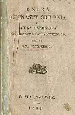 - 1 2 Jan Czyński, piętnasty sierpnia i sąd na członków Towarzystwa Patriotycznego, 1831, s. 29.