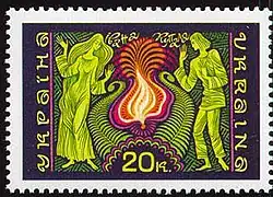 W to święto, zgodnie z powszechnym znakiem, woda może „zaprzyjaźnić się” z ogniem. Symbolem tego połączenia było ognisko[64] rozpalane wzdłuż brzegów rzek. Wianki były często używane do wróżenia w Noc Kupały[65]: jeśli unosiły się na wodzie, oznaczało to szczęście i długie życie lub małżeństwo[66].