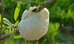 Płazy te nie odbywają godów w wodzie i żyją w niej tylko za czasów młodości[3]. Dorosłe osobniki rzadko i niechętnie pływają[5]. W czasie godów zbiorowo składają skrzek na gałęziach i liściach drzew blisko wody[3]. Jedna samica może złożyć 1000 ziaren skrzeku[5]. Uformowana, pienista kula ze skrzeku i nasienia twardnieje, a w jej środku rozwijają się kijanki[3][5]. Następnie larwy są spłukiwane z pierwszym deszczem, podczas pory deszczowej, w toń wody[3].