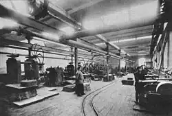 Zatrudnienie w 1914 wynosiło 600 osób[4]. W 1915 część maszyn i urządzeń została ewakuowana do Rosji.