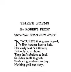 Nothing Gold Can Stay – wiersz amerykańskiego poety Roberta Frosta napisany w 1922 i opublikowany w 1923 jako część jego zbioru New Hampshire: A Poem with Notes and Grace Notes[1], wyróżnionego w 1924 Nagrodą Pulitzera w kategorii poezji[2]. Wiersz rymowany AABBCCDD[3]