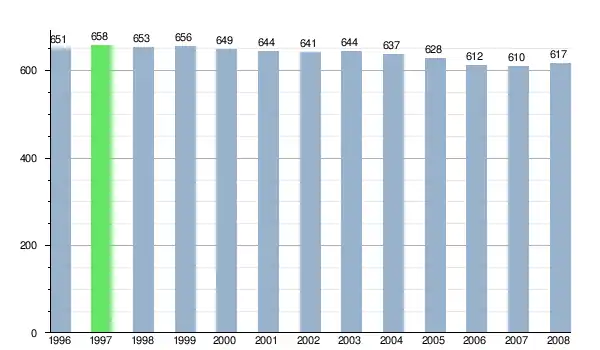 Według danych z dnia 31 grudnia 2012 roku, wieś zamieszkiwało 621 osób, w tym 317 kobiet i 304 mężczyzn[6].