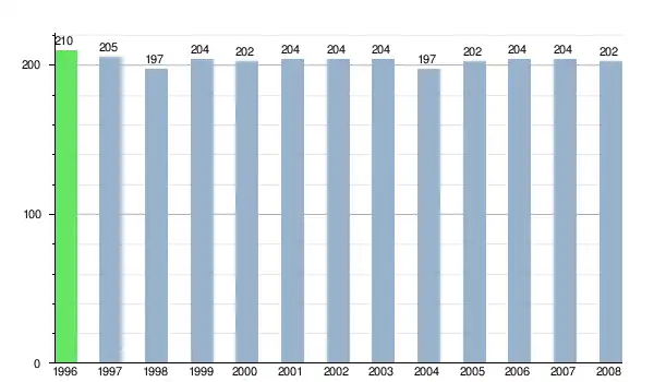 Według danych z dnia 31 grudnia 2012, wieś zamieszkiwało 205 osób, w tym 110 kobiet i 95 mężczyzn[6].