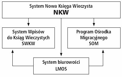 - Ośrodki Migracyjne Ksiąg Wieczystych – obsługują migrację ksiąg wieczystych w formie papierowej do centralnej bazy danych NKW