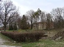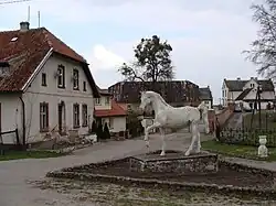 We wsi znajduje się pałac eklektyczny, przebudowany w XIX w. na wzór francuskiego chateau, posiada skrzydła boczne i półowalny ryzalit w elewacji ogrodowej. Przy pałacu zabudowania gospodarcze z XVIII i XIX w., w skład których wchodzi paradna stajnia, spichlerz i tzw. stary klasztor. W rozległym parku liczne okazy zabytkowych i egzotycznych drzew oraz współczesne rzeźby koni[5]. Majętność znana od 1567, gdy była w rękach rodu Heydeck. W XVII w. włości te objęła rodzina von Kerssenstein, a w 1693 ród von Groeben, który przebywał tu do 1945 wraz z rodem Krasuckich z rodu Krajewskich.