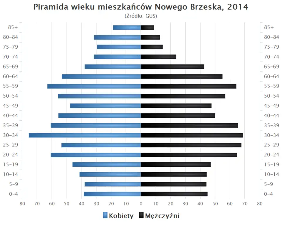 - Piramida wieku mieszkańców Nowego Brzeska w 2014 roku[7].