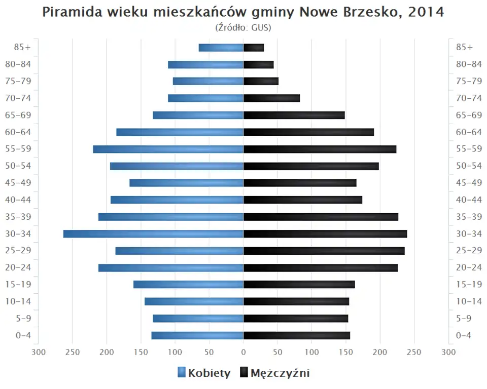 - Piramida wieku mieszkańców gminy Nowe Brzesko w 2014 roku[1].