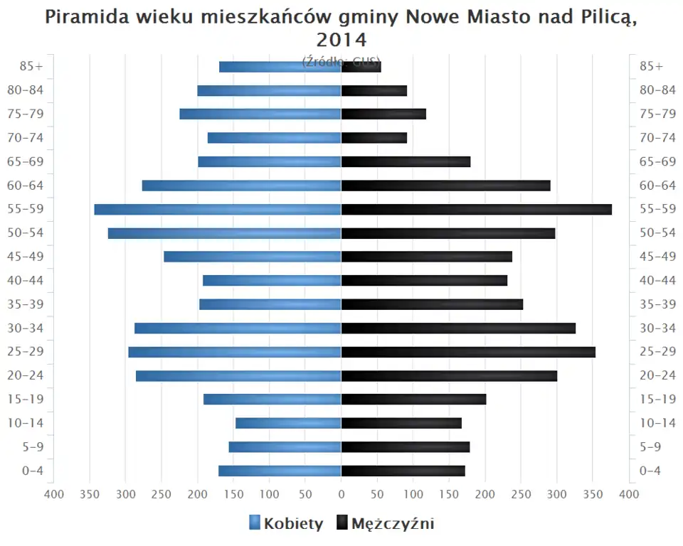 - Piramida wieku mieszkańców gminy Nowe Miasto nad Pilicą w 2014 roku[6].