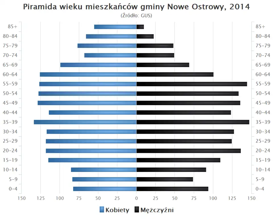 - Piramida wieku mieszkańców gminy Nowe Ostrowy w 2014 roku[1].