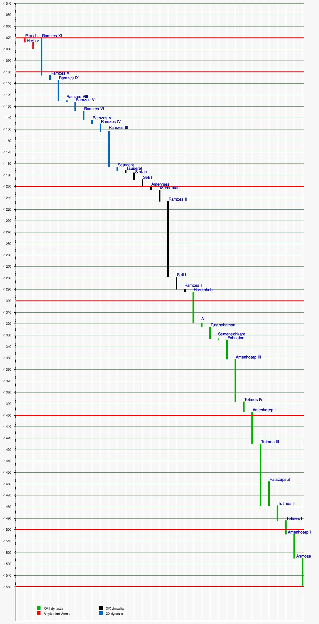 Wykres chronologiczny panowania władców starożytnego Egiptu od XVIII do XX dynastii. Jego celem jest poglądowe zobrazowanie okresów panowania poszczególnych faraonów w epoce, w której ich państwo osiągnęło szczyt swej potęgi.
