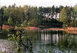 W lesie w pobliżu jeziora znaleźć można też pozostałości ziemnych okopów wojskowych z czasów II wojny światowej.