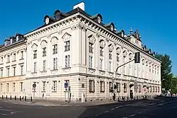 W czasach panowania Augusta II Mocnego przystąpiono do organizowania przedsięwzięć budowlanych w Warszawie. Powołany został specjalny urząd budowlany, którym od 1715 kierował Joachim Daniel Jauch. August zamawiał projekty przebudowy zamków w Warszawie, Ujeździe, nawet w Wilanowie. Poprzestał tylko na dwóch inwestycjach: Ogrodzie Saskim i Białej Sali w Wilanowie. Koncepcja Osi Saskiej pochodziła zarówno od Augusta Mocnego, jak i głównego architekta Mateusza Daniela von Poppelmanna (twórca drezdeńskiego Zwingeru). W Warszawie podejmowano najwięcej przedsięwzięć budowlanych. Z jego uporządkowywaniem wiąże się powstanie w 1743 roku Komisji Brukowej stworzonej z inicjatywy marszałka Franciszka Bielińskiego, która miała uporządkować stolicę. W ostatnich latach panowania Augusta II Mocnego pod koniec lat dwudziestych panował wzmożony ruch budowlany, wzorowany na francuskim typie rezydencji entre cour et jardin (między dziedzińcem a ogrodem), który miał w Polsce własną tradycję rozwojową sięgającą pierwszej połowy XVII wieku. Powstał w tym czasie Pałac Błękitny (1726) Anny Orzelskiej, córki króla Augusta II Mocnego, założony na osi prostopadłej do ulicy, naśladujący typ warszawskiego pałacu późnobarokowego. Paradny dziedziniec ujęty został podkową korpusu. Żadna z siedzib magnackich nie dorównywała królewskiemu pałacowi, natomiast na prowincji taki typ rezydencji rozwijał się pod wpływem triumfu oligarchii magnackiej w tym czasie.