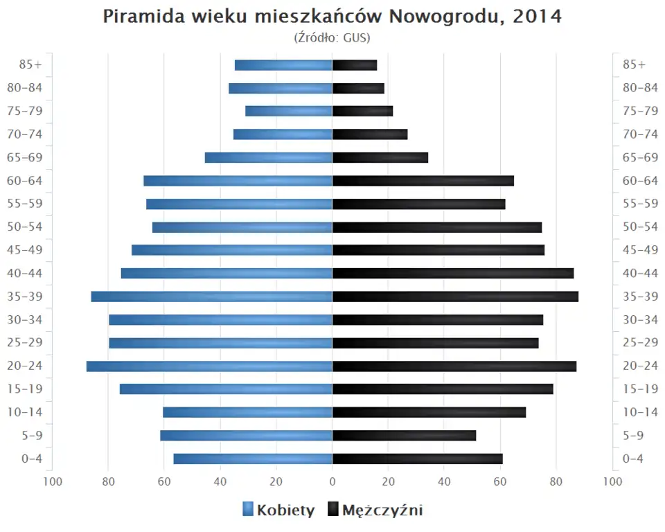 - Piramida wieku mieszkańców Nowogrodu w 2014 roku[12]: