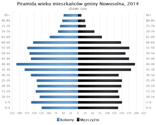 - Piramida wieku mieszkańców gminy Nowosolna w 2014 roku[1].