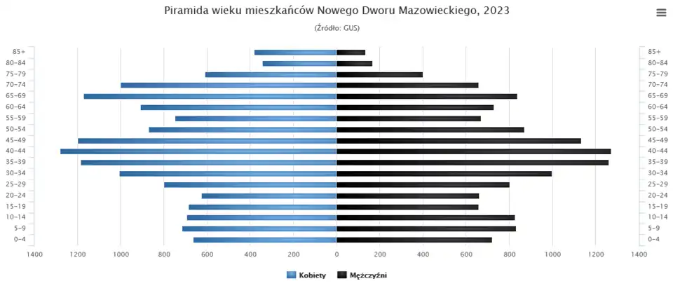 - Piramida wieku mieszkańców Nowego Dworu Mazowieckiego w 2023 roku[25].