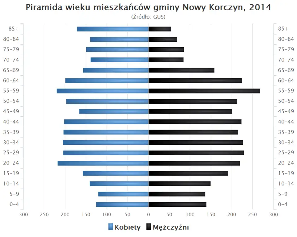 - Piramida wieku mieszkańców gminy Nowy Korczyn w 2014 roku[1].
