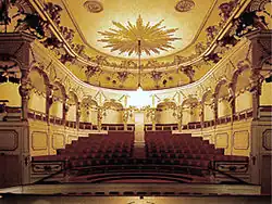 Teatr wkomponowano w pałac na życzenie Fryderyka II. Wnętrza teatralne zajęły dwa piętra skrzydła południowego. Salę urządzono w stylu rokoko, z przewagą kolorów czerwonego i białego oraz złoceń. Teatr nie posiada loży królewskiej – Fryderyk II oglądał przedstawienia siedząc razem ze swoimi gośćmi w trzecim rzędzie na widowni. Rzędy widowni ustawione są w półkole na wzór antyczny.