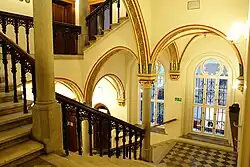 Komunikację pionową stanowią cztery wewnętrzne klatki schodowe: paradna, czterobiegowa klatka schodowa z duszą, ponadto dwie ze schodami zabiegowymi i jedna z krętymi.