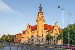 | 1. | Wały Jagiellońskie 2 | 1903–1906 | neogotyk | Budynek od początku XX wieku mieszczący urzędy sądowe, kolejno: Pruski (Land- und Amtsgericht), Grodzki, Wojewódzki i Okręgowy. Elewacja frontowa w części środkowej jest ujętą dwubocznymi wykuszami przechodzącymi w sterczyny flankujące szczyt. Wieża ma wysokość 44 m, galerię widokową oraz hełm o formach barokowych. Na dekoracyjnych szczytach znajdują się m.in.: herb Bydgoszczy oraz orzeł pruski. | ![]() | |