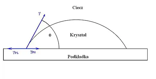 - – energia powierzchniowa podkładka – kryształ [J/m²],