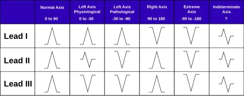 - oś elektryczna prawidłowa – kąt nachylenia osi elektrycznej mieści się w granicach 0° do +90°