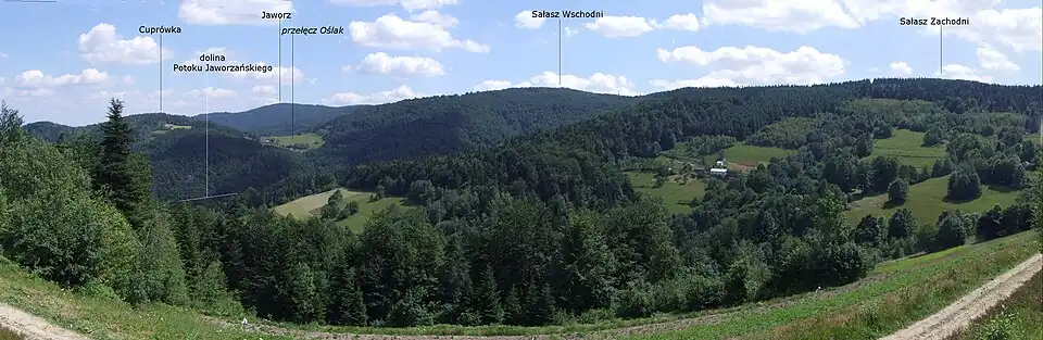 Oślak (705 m) – przełęcz w Paśmie Łososińskim w Beskidzie Wyspowym. Nie znajduje się w głównym grzbiecie tego pasma, lecz w bocznym, odbiegającym na północ grzbiecie Sałasza Wschodniego, pomiędzy Sałaszem (903 m), a Cuprówką (753 m). Grzbiet ten oddziela dolinę Jaworzańskiego Potoku (po zachodniej stronie) od doliny Żmiączki po wschodniej stronie[1]. Jest porośnięty lasem, ale rejon przełęczy Oślak jest bezleśny, zajęty przez zabudowania. Po wschodniej stronie jest to osiedle Oślak należące do wsi Żmiąca w województwie małopolskim, w powiecie limanowskim, w gminie Laskowa, po stronie zachodniej osiedle Korab należące do wsi Jaworzna, też w gminie Laskowa. Przez przełęcz i grzbiet Cuprówki biegnie granica między tymi wsiami. Z obydwu wsi na przełęcz Oślak prowadzi droga[2]