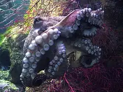 - ↑ Giant Pacific octopus. Monterey Bay Aquarium, 2017. [dostęp 2017-12-06]. [zarchiwizowane z tego adresu (2018-07-04)].