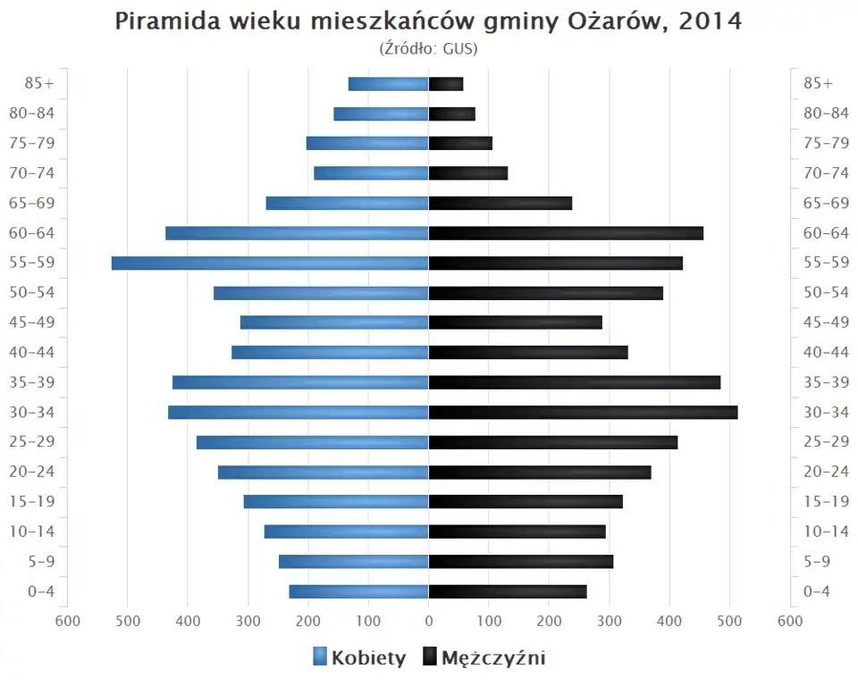 - Piramida wieku mieszkańców gminy Ożarów w 2014 roku[1].